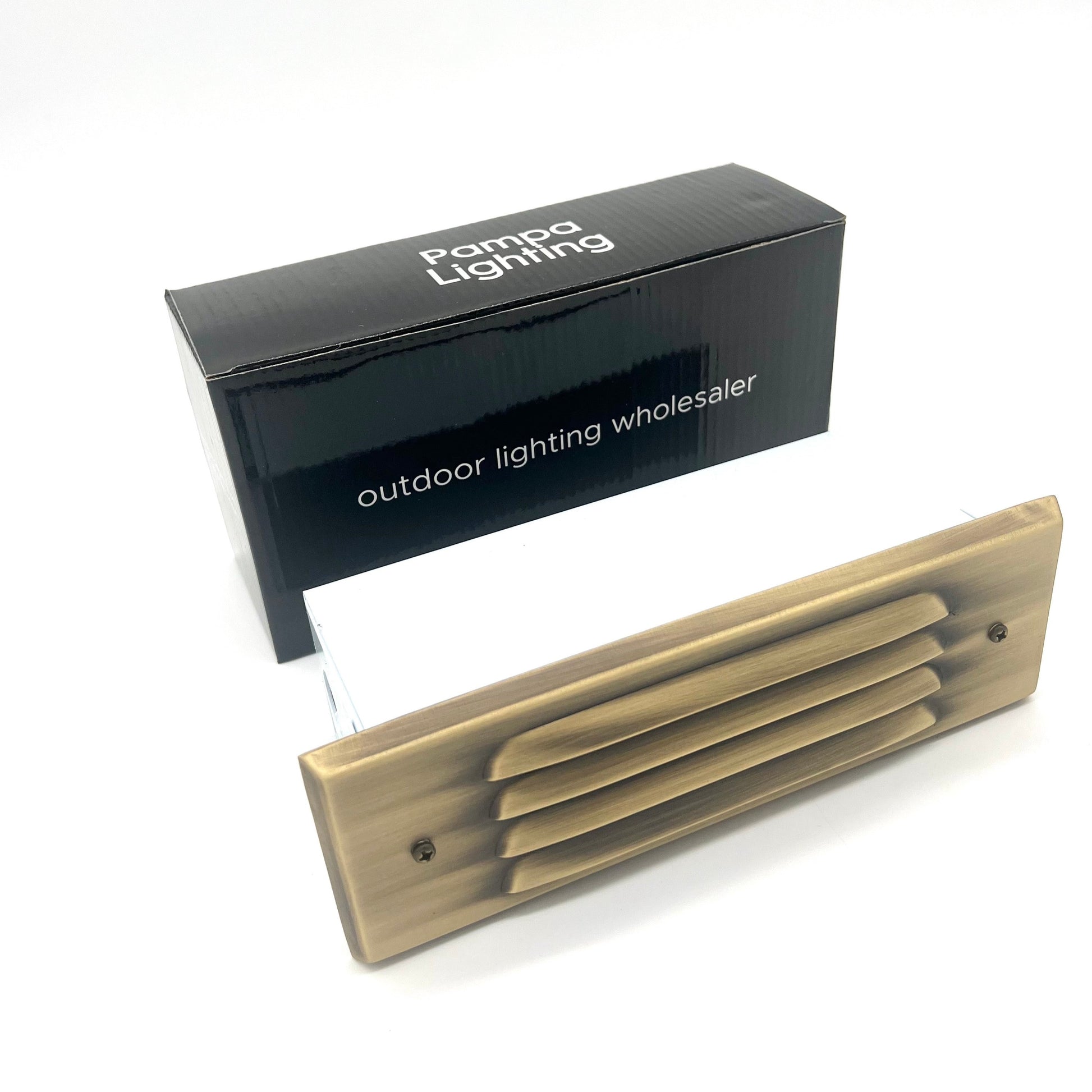 llluminate and elevate your outdoor space with the Tulay Antique Brass Louvered Steplight. Specifically designed for concrete steps and deck step lighting, this luminaire serves as the ideal solution for outdoor step lights, providing low-voltage, energy-efficient illumination. The housing, crafted from robust steel material, and its brass faceplate not only ensure durability but also deliver a sleek and seamless look. These step lights stand out as perfect choices for deck lights, creating a safe and inviting atmosphere with a perfect blend of functionality and aesthetics. With its distinctive Antique Brass material construction, the Tulay Antique Brass Louvered Steplight epitomizes the ideal combination of style and efficiency, setting the stage for an enchanting outdoor experience that truly illuminates every step with grace.