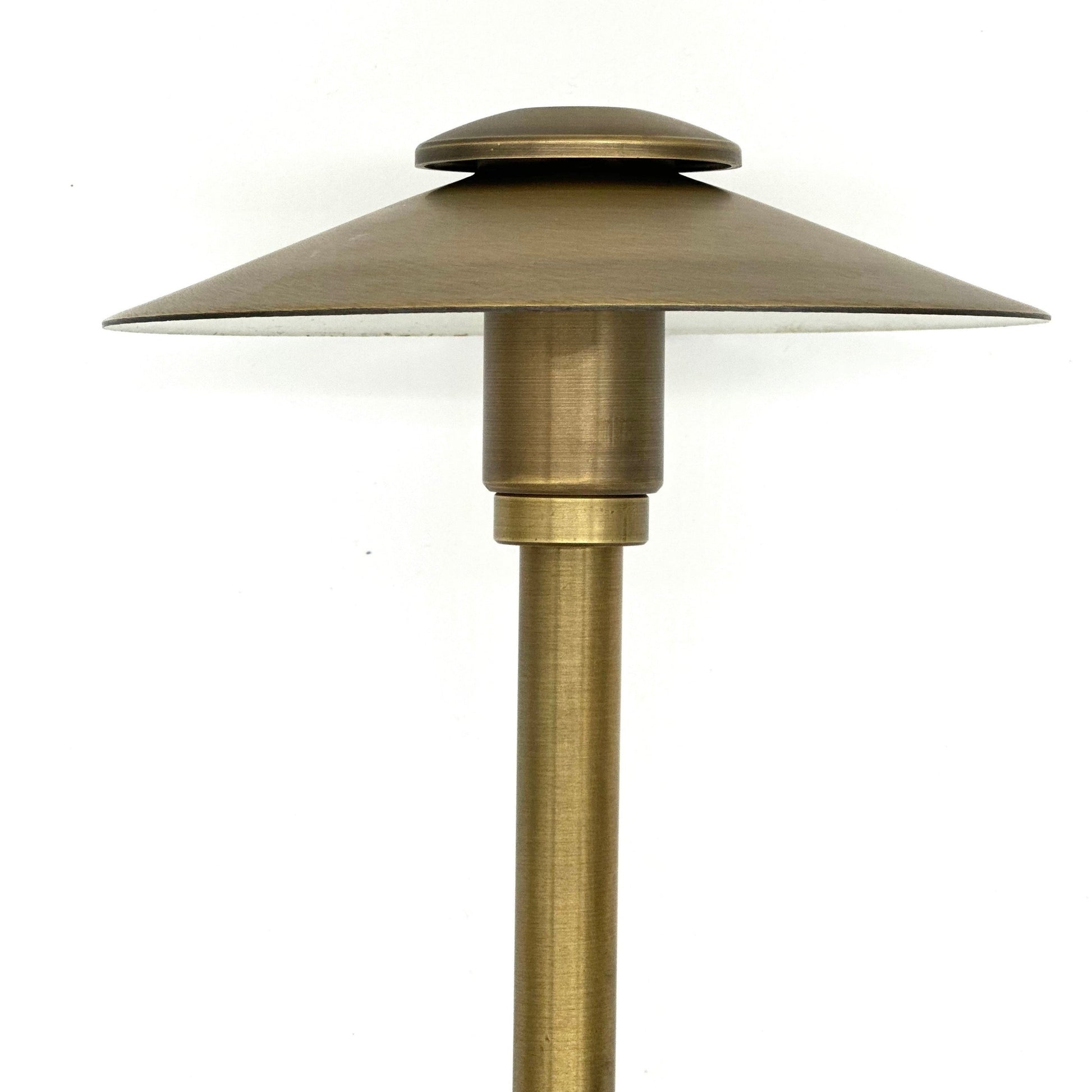 The hat of the Stelvio Path Light showcases thoughtful engineering, featuring a built-in brass ring for easy height adjustment relative to the bulb. This ingeniously simple feature allows you to fine-tune the light projection according to your needs, withdrawing the hat closer to the bulb resulting in increased light output.