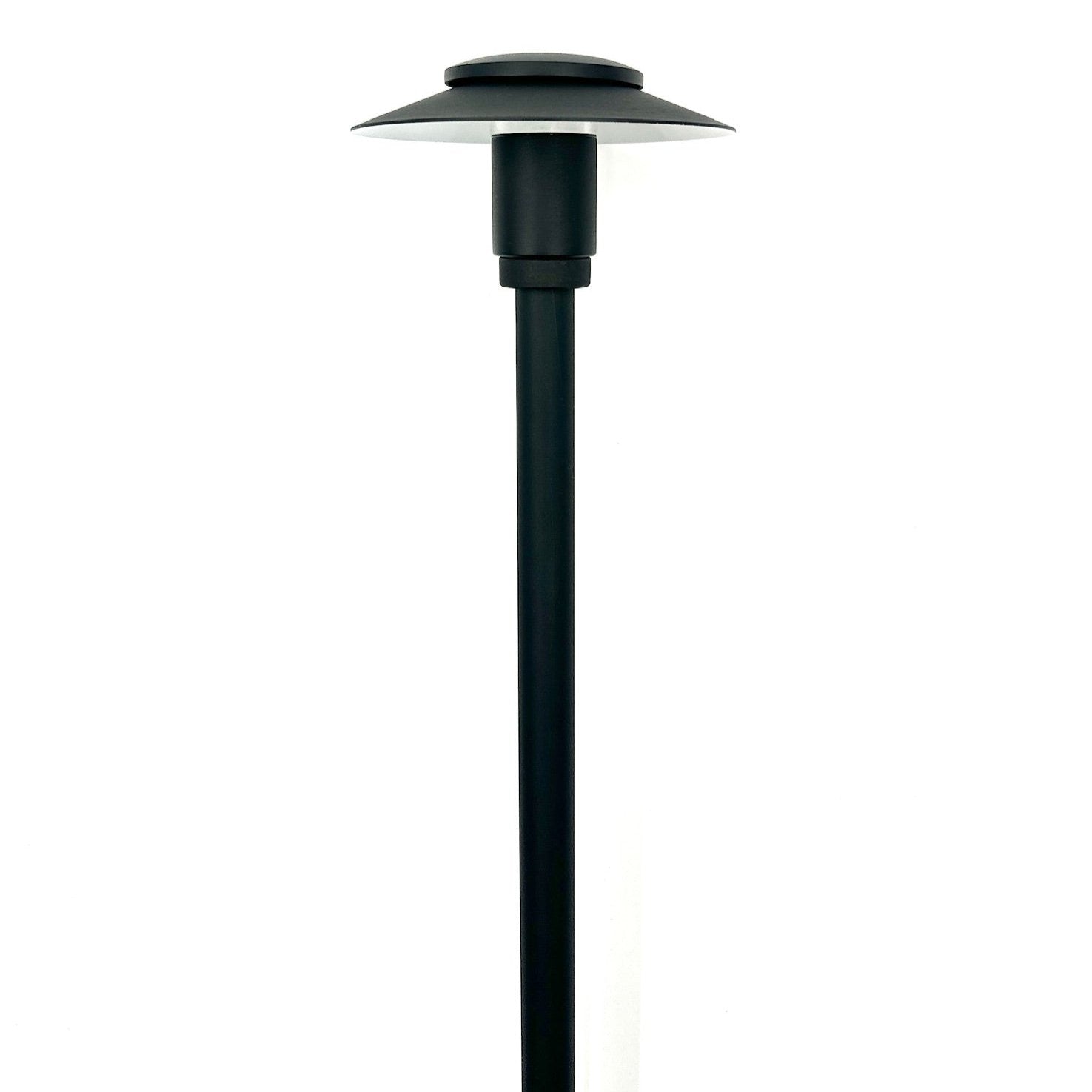 The hat of the Stelvio Path Light stands as a testament to its thoughtful engineering. Highlighting a built-in brass ring, the hat can be effortlessly adjusted in height relative to the bulb. This ingeniously simple feature empowers you to fine-tune the pathway lighting projection according to your needs, withdrawing the hat closer to the bulb resulting in an increased light output.